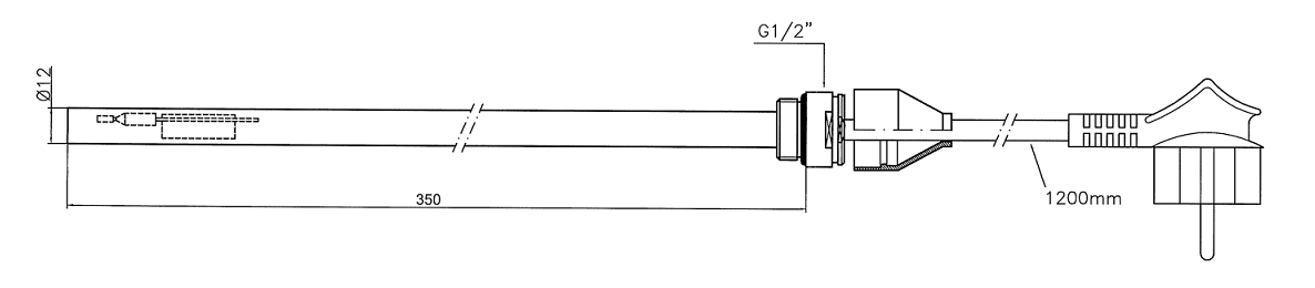 • długość elementu grzejnego - pręta: 350 mm,