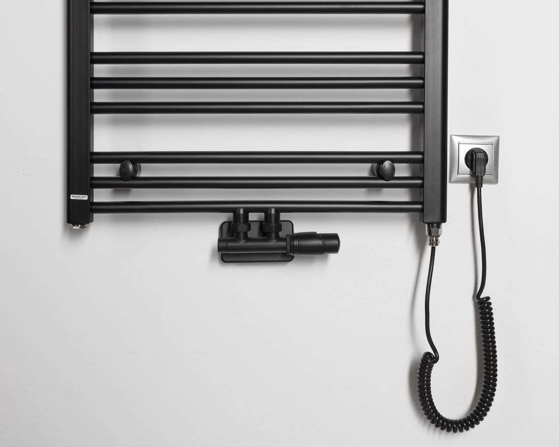 Grzałka elektryczna bez termostatu do grzejnika czarna dostępna w ofercie marki AQUALINE. Idealne urządzenie, które można wykorzystać do grzejników łazienkowych, bezpośrednio podłączone do instalacji elektrycznej 230V. Grzałka jest świetnym urządzeniem w przypadku jeżeli grzejnik mamy podłączony do ogrzewania centralnego a chcemy żeby w okresie poza sezonem grzewczym korzystać z grzejnika żeby np. wysuszyć ręczniki to w tym momencie grzałka podłączona do grzejnika znakomicie spełni swoją funkcję, Można również zastosować grzałkę jeżeli w łazience nie mamy centralnego ogrzewania to wówczas grzałka zamontowana w grzejniku daje nam komfort ciepła w czasie kąpieli.