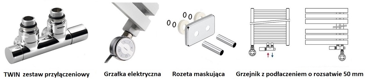 Zastosowanie podłączenia zasilania grzejnika przez instalację centralnego ogrzewania jak i wykorzystanie elektrycznej grzałki do samodzielnego ogrzewania poza sezonem grzewczym. Zalecamy zastosowanie grzałki o takiej samej lub podobnej mocy w zależności od specyfikacji grzejnika.