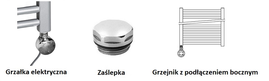 W przypadku gdy grzejnik jest ogrzewany wyłącznie elektrycznie, tzn. za pomocą grzałki, należy dodatkowo dokupić zaślepkę ½" , aby zatkać drugi otwór w grzejniku, który w przeciwnym razie zostałby wykorzystany do podłączenia do centralnego ogrzewania. Zalecamy napełnienie grzejnika wodą destylowaną. Grzałka powinna mieć taką samą lub podobną moc, zgodnie ze specyfikacją techniczną grzejnika. Grzałki z termostatem regulują temperaturę cieczy w grzejniku.