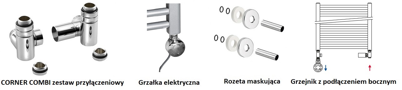 Zastosowanie podłączenia zasilania grzejnika przez instalację centralnego ogrzewania jak i wykorzystanie elektrycznej grzałki do samodzielnego ogrzewania poza sezonem grzewczym. Zalecamy zastosowanie grzałki o takiej samej lub podobnej mocy w zależności od specyfikacji grzejnika.