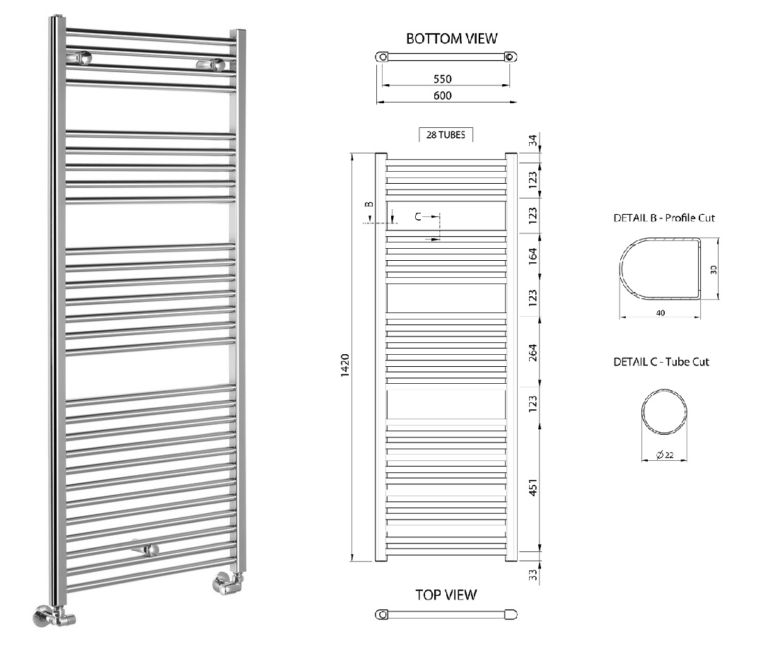 Zastosowanie podłączenia zasilania grzejnika przez instalację centralnego ogrzewania jak i wykorzystanie elektrycznej grzałki do samodzielnego ogrzewania poza sezonem grzewczym. Zalecamy zastosowanie grzałki o takiej samej lub podobnej mocy w zależności od specyfikacji grzejnika.