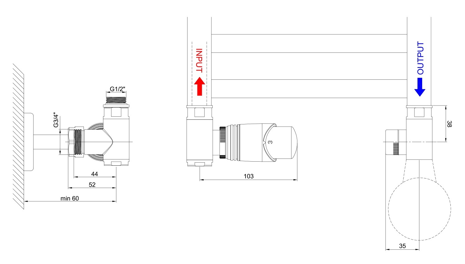 WICHER ECK COMBI zestaw przyłączeniowy termostatyczny uniwersalny to element wyposażenia grzejnika łazienkowego. W przypadku ogrzewania centralnego oraz elektrycznego ważny jest dobór zestawu przyłączeniowego. Do wyboru jest zawór ręczny lub zawór z głowicą termostatyczną. Tu naprzeciw wychodzi nam czeska firma BRUCKNER z ofertą zestawu przyłączeniowego WICHER ECK COMBI, którym w łatwy i indywidualny sposób można regulować temperaturę grzejnika a tym samym tworzyć komfort ciepła w łazience. Zawór przystosowany do grzejników podłączonych do centralnego ogrzewania, w których chcesz jednocześnie zamontować grzałkę elektryczną. Dzięki takiemu rozwiązaniu zyskujesz elastyczność – zimą korzystasz z sieci C.O., a wiosną i latem możesz użyć grzałki, by szybko dogrzać łazienkę lub wysuszyć mokre ręczniki. Dużą zaletą zestawu przyłączeniowego WICHER ECK COMBI jest możliwość zmiany zaworu termostatycznego z lewej na prawą stronę.