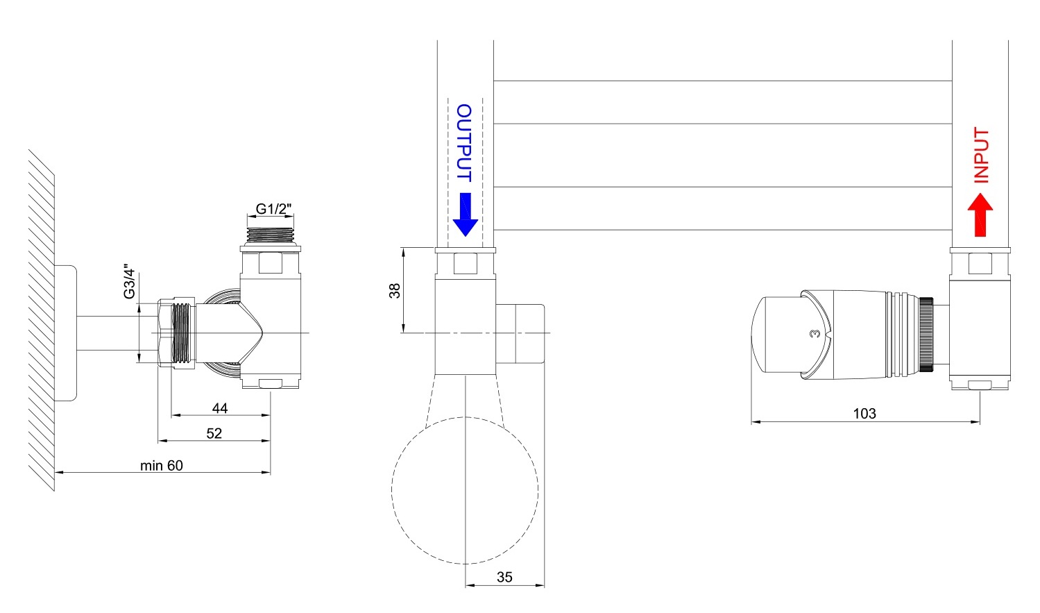Zawór z głowicą termostatyczną: Zintegrowany termostat utrzymuje ustawioną temperaturę wewnątrz urządzenia. Zawór termostatyczny musi znajdować się na wlocie ciepłej wody.