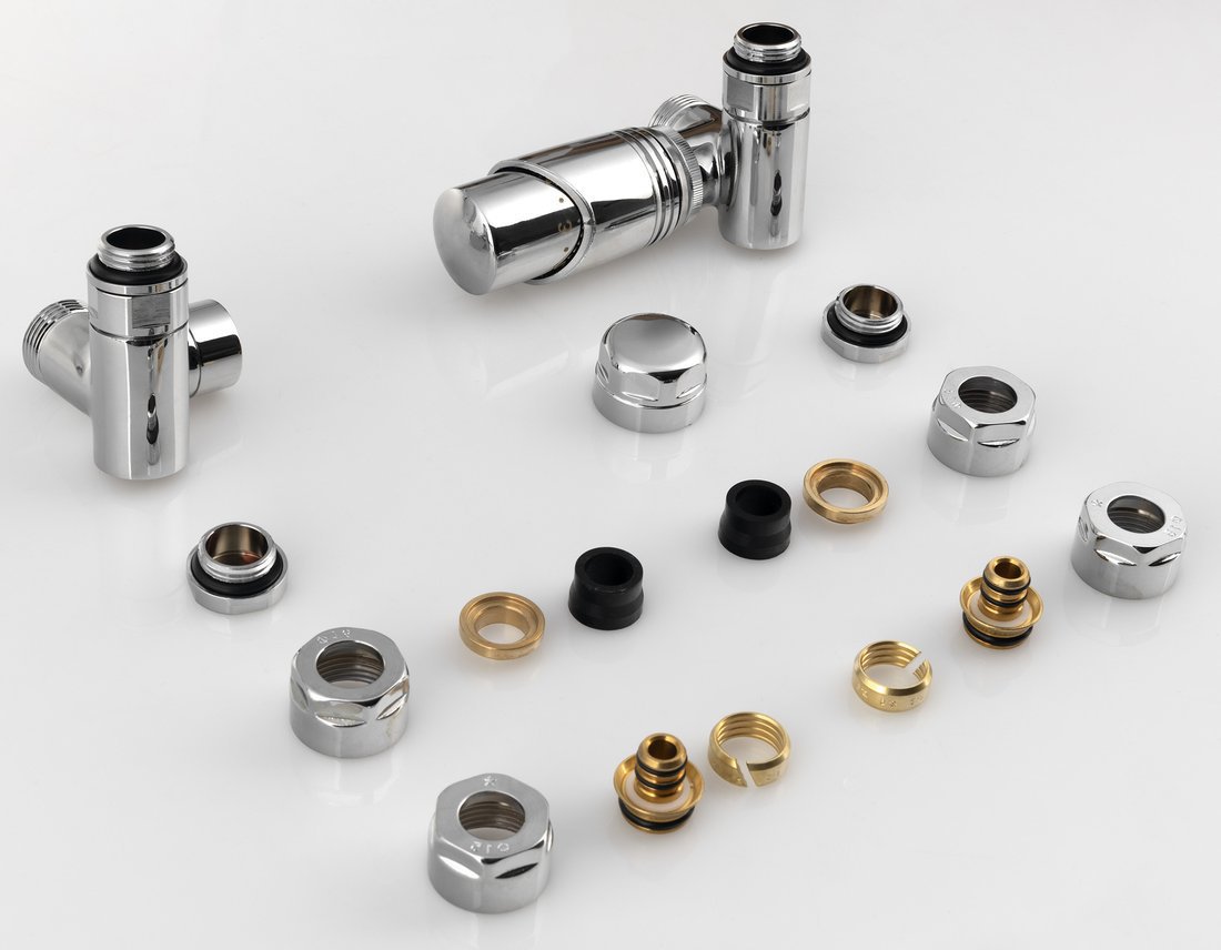 Oferowane przez nas zawory przyłączeniowe dostarczane są w komplecie ze złączką zaciskową do najczęściej stosowanych rur (Ø15 mm Cu i Ø16 mm Alupex), nie trzeba dokupować dalszych akcesoriów.
