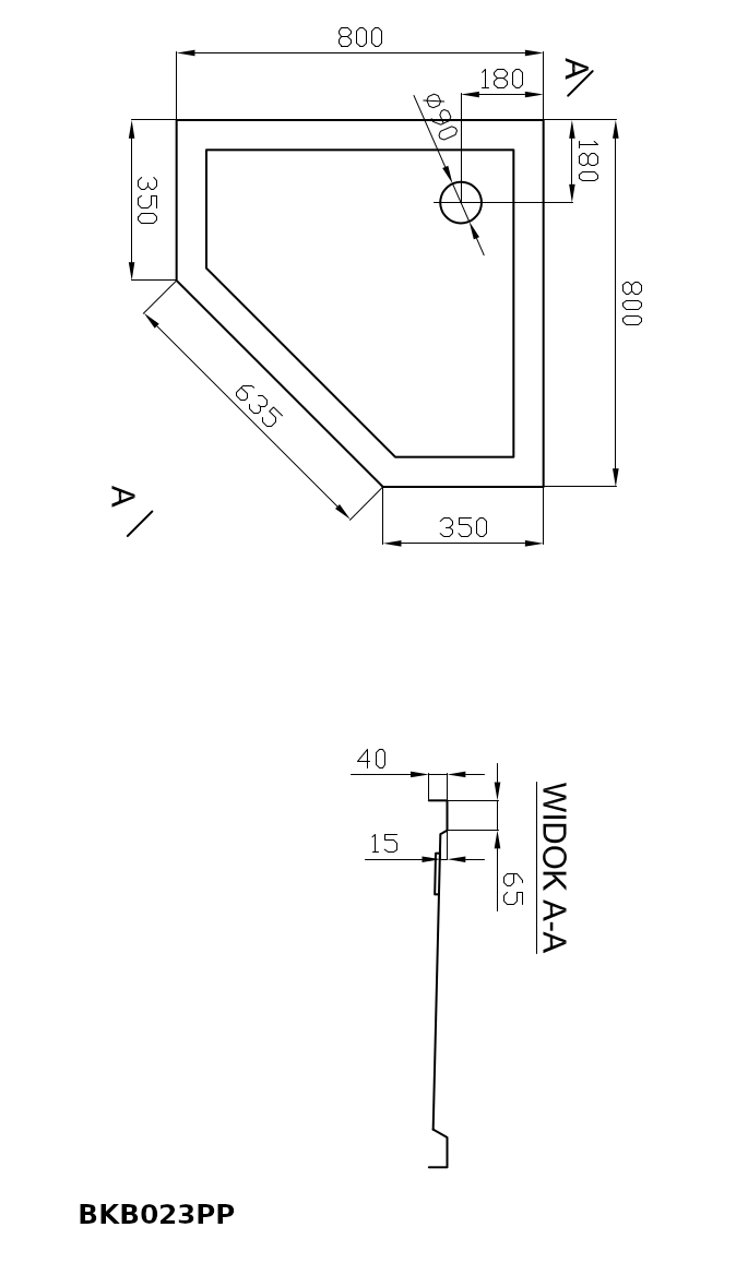 • do kompletowania z kabiną pentagonalną (pięciokątną),