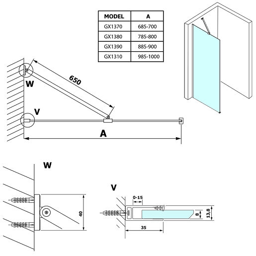 * Wspornik jest elementem wizualizacji i nie ma go w komplecie z kabiną.