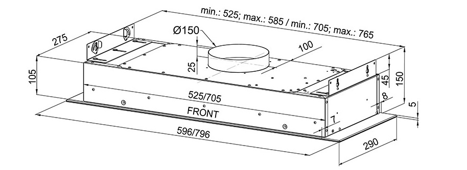 | Typ okapu | Prostokątny |