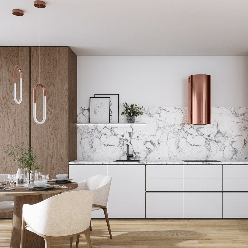 Okap kuchenny LOBELIO 39.1 MIEDŹ przyścienny to wyjątkowe, ponadczasowe urządzenie, które jest nieodzownym elementem  wyposażenia w każdej nowoczesnej kuchni. Główną funkcją okapów kuchennych jest oczyszczanie powietrza. Jest to możliwe dzięki zastosowaniu innowacyjnej technologii. Podczas gotowania urządzenie uwalnia kuchnię od pary wodnej i nieczystości a podłączony do komina wentylacyjnego usuwa opary poza pomieszczenie. Zamontowane w nim filtry pozwalają na oczyszczanie kuchni z tłuszczu i brudu oraz neutralizują nieprzyjemne zapachy. Okap wykonany został z wysokiej jakości materiałów, które przez wiele lat gwarantują bezawaryjną pracę urządzenia. Doskonała oraz solidna jakość wykonania to cechy, które wyróżniają okap LOBELIO polskiej firmy GLOBALO, wiodącego producenta okapów kuchennych na rynku krajowym. Firma o ugruntowanej pozycji, działająca od wielu lat na polskim rynku stawia na energooszczędność, ekologię oraz jakość swoich produktów. Jednym z ich znakomitych produktów jest przyścienny okap LOBELIO, który zadowoli nawet najbardziej wymagającego klienta. Dobrze dopasowany okap kuchenny może idealnie wpasować się w aranżację nowoczesnej kuchni oraz będzie zachwycał i przyciągał wzrok swoim wyglądem dając komfort użytkowania i elegancji.