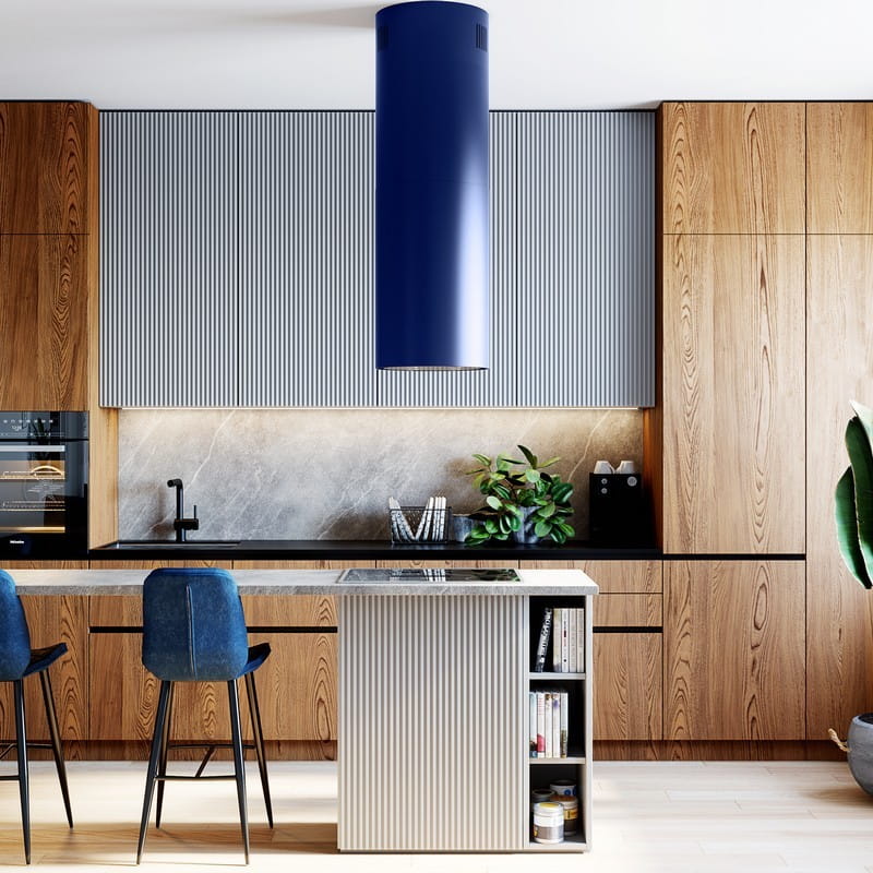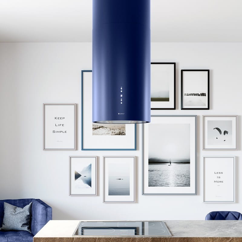 Okap kuchenny CYLINDRO ISOLA 39.7 BLUE wyspowy to wyjątkowe, ponadczasowe urządzenie, które jest nieodzownym elementem wyposażenia w każdej nowoczesnej kuchni. Coraz częściej w planowaniu wystroju i rozmieszczeniu sprzętu kuchennego decydujemy się na zamontowanie wyspy jako dodatkowego miejsca pracy. Jest to modne i doceniane rozwiązanie. Zamontowanie na wyspie płyty grzewczej spowoduje, że możemy swobodnie przygotować posiłki a umieszczony nad nią okap kuchenny CYLINDRO ISOLA sprawi, że gotowanie będzie nie tylko łatwe i przyjemne ale również wygodne. Główną funkcją okapów kuchennych jest oczyszczanie powietrza. Jest to możliwe dzięki zastosowaniu innowacyjnej technologii. Podczas gotowania urządzenie uwalnia kuchnię od pary wodnej i nieczystości a podłączony do komina wentylacyjnego usuwa opary poza pomieszczenie. Zamontowane w nim filtry pozwalają na oczyszczanie kuchni z tłuszczu i brudu oraz neutralizują nieprzyjemne zapachy. Okap wykonany został z wysokiej jakości materiałów, które przez wiele lat gwarantują bezawaryjną pracę urządzenia. Doskonała oraz solidna jakość wykonania to cechy, które wyróżniają okap CYLINDRO ISOLA polskiej firmy GLOBALO, wiodącego producenta okapów kuchennych na rynku krajowym. Firma o ugruntowanej pozycji, działająca od wielu lat na polskim rynku stawia na energooszczędność, ekologię oraz jakość swoich produktów. Jednym z ich znakomitych produktów jest wyspowy okap CYLINDRO ISOLA, który zadowoli nawet najbardziej wymagającego klienta. Dobrze dopasowany okap kuchenny może idealnie wpasować się w aranżację nowoczesnej kuchni oraz będzie zachwycał i przyciągał wzrok swoim wyglądem dając komfort użytkowania i elegancji.