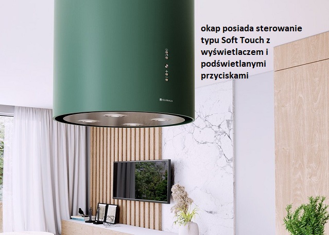 Okap kuchenny CYLINDRO ISOLA 39.7 GREEN wyspowy to wyjątkowe, ponadczasowe urządzenie, które jest nieodzownym elementem wyposażenia w każdej nowoczesnej kuchni. Coraz częściej w planowaniu wystroju i rozmieszczeniu sprzętu kuchennego decydujemy się na zamontowanie wyspy jako dodatkowego miejsca pracy. Jest to modne i doceniane rozwiązanie. Zamontowanie na wyspie płyty grzewczej spowoduje, że możemy swobodnie przygotować posiłki a umieszczony nad nią okap kuchenny CYLINDRO ISOLA sprawi, że gotowanie będzie nie tylko łatwe i przyjemne ale również wygodne. Główną funkcją okapów kuchennych jest oczyszczanie powietrza. Jest to możliwe dzięki zastosowaniu innowacyjnej technologii. Podczas gotowania urządzenie uwalnia kuchnię od pary wodnej i nieczystości a podłączony do komina wentylacyjnego usuwa opary poza pomieszczenie. Zamontowane w nim filtry pozwalają na oczyszczanie kuchni z tłuszczu i brudu oraz neutralizują nieprzyjemne zapachy. Okap wykonany został z wysokiej jakości materiałów, które przez wiele lat gwarantują bezawaryjną pracę urządzenia. Doskonała oraz solidna jakość wykonania to cechy, które wyróżniają okap CYLINDRO ISOLA polskiej firmy GLOBALO, wiodącego producenta okapów kuchennych na rynku krajowym. Firma o ugruntowanej pozycji, działająca od wielu lat na polskim rynku stawia na energooszczędność, ekologię oraz jakość swoich produktów. Jednym z ich znakomitych produktów jest wyspowy okap CYLINDRO ISOLA, który zadowoli nawet najbardziej wymagającego klienta. Dobrze dopasowany okap kuchenny może idealnie wpasować się w aranżację nowoczesnej kuchni oraz będzie zachwycał i przyciągał wzrok swoim wyglądem dając komfort użytkowania i elegancji.
