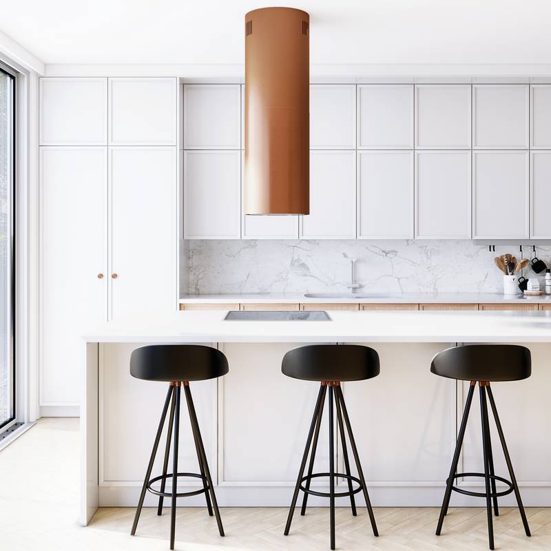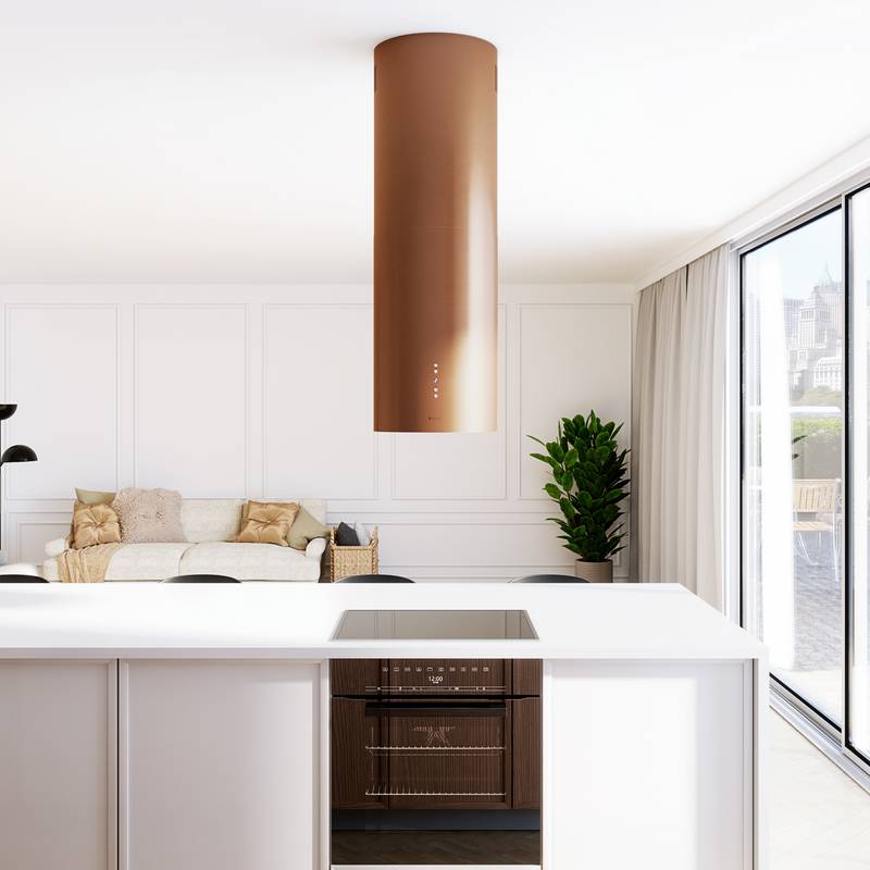 Okap kuchenny CYLINDRO ISOLA 39.7 MIEDŹ MAT wyspowy to wyjątkowe, ponadczasowe urządzenie, które jest nieodzownym elementem wyposażenia w każdej nowoczesnej kuchni. Coraz częściej w planowaniu wystroju i rozmieszczeniu sprzętu kuchennego decydujemy się na zamontowanie wyspy jako dodatkowego miejsca pracy. Jest to modne i doceniane rozwiązanie. Zamontowanie na wyspie płyty grzewczej spowoduje, że możemy swobodnie przygotować posiłki a umieszczony nad nią okap kuchenny CYLINDRO ISOLA sprawi, że gotowanie będzie nie tylko łatwe i przyjemne ale również wygodne. Główną funkcją okapów kuchennych jest oczyszczanie powietrza. Jest to możliwe dzięki zastosowaniu innowacyjnej technologii. Podczas gotowania urządzenie uwalnia kuchnię od pary wodnej i nieczystości a podłączony do komina wentylacyjnego usuwa opary poza pomieszczenie. Zamontowane w nim filtry pozwalają na oczyszczanie kuchni z tłuszczu i brudu oraz neutralizują nieprzyjemne zapachy. Okap wykonany został z wysokiej jakości materiałów, które przez wiele lat gwarantują bezawaryjną pracę urządzenia. Doskonała oraz solidna jakość wykonania to cechy, które wyróżniają okap CYLINDRO ISOLA polskiej firmy GLOBALO, wiodącego producenta okapów kuchennych na rynku krajowym. Firma o ugruntowanej pozycji, działająca od wielu lat na polskim rynku stawia na energooszczędność, ekologię oraz jakość swoich produktów. Jednym z ich znakomitych produktów jest wyspowy okap CYLINDRO ISOLA, który zadowoli nawet najbardziej wymagającego klienta. Dobrze dopasowany okap kuchenny może idealnie wpasować się w aranżację nowoczesnej kuchni oraz będzie zachwycał i przyciągał wzrok swoim wyglądem dając komfort użytkowania i elegancji.