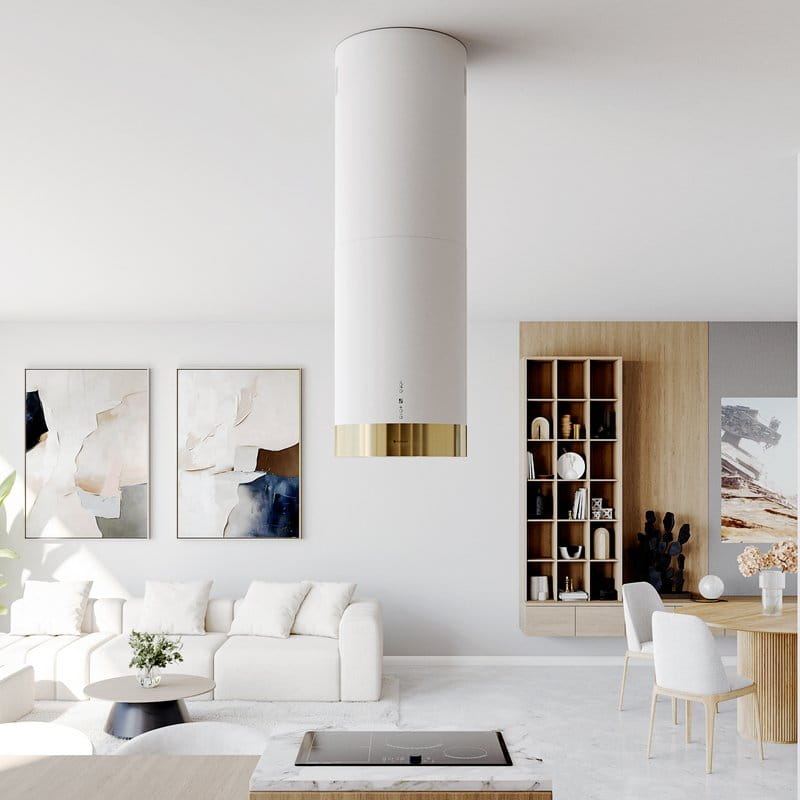 Okap kuchenny CYLINDRO ISOLA 39.7 WHITE/GOLD wyspowy to wyjątkowe, ponadczasowe urządzenie, które jest nieodzownym elementem wyposażenia w każdej nowoczesnej kuchni. Coraz częściej w planowaniu wystroju i rozmieszczeniu sprzętu kuchennego decydujemy się na zamontowanie wyspy jako dodatkowego miejsca pracy. Jest to modne i doceniane rozwiązanie. Zamontowanie na wyspie płyty grzewczej spowoduje, że możemy swobodnie przygotować posiłki a umieszczony nad nią okap kuchenny CYLINDRO ISOLA sprawi, że gotowanie będzie nie tylko łatwe i przyjemne ale również wygodne. Główną funkcją okapów kuchennych jest oczyszczanie powietrza. Jest to możliwe dzięki zastosowaniu innowacyjnej technologii. Podczas gotowania urządzenie uwalnia kuchnię od pary wodnej i nieczystości a podłączony do komina wentylacyjnego usuwa opary poza pomieszczenie. Zamontowane w nim filtry pozwalają na oczyszczanie kuchni z tłuszczu i brudu oraz neutralizują nieprzyjemne zapachy. Okap wykonany został z wysokiej jakości materiałów, które przez wiele lat gwarantują bezawaryjną pracę urządzenia. Doskonała oraz solidna jakość wykonania to cechy, które wyróżniają okap CYLINDRO ISOLA polskiej firmy GLOBALO, wiodącego producenta okapów kuchennych na rynku krajowym. Firma o ugruntowanej pozycji, działająca od wielu lat na polskim rynku stawia na energooszczędność, ekologię oraz jakość swoich produktów. Jednym z ich znakomitych produktów jest wyspowy okap CYLINDRO ISOLA, który zadowoli nawet najbardziej wymagającego klienta. Dobrze dopasowany okap kuchenny może idealnie wpasować się w aranżację nowoczesnej kuchni oraz będzie zachwycał i przyciągał wzrok swoim wyglądem dając komfort użytkowania i elegancji.
