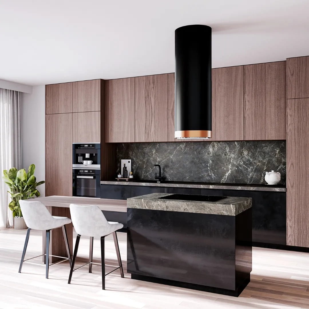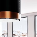 Okap kuchenny HEWENO ISOLA 39.2 BLACK/MIEDŹ MAT RING wyspowy to wyjątkowe, ponadczasowe urządzenie, które jest nieodzownym elementem wyposażenia w każdej nowoczesnej kuchni. Coraz częściej w planowaniu wystroju i rozmieszczeniu sprzętu kuchennego decydujemy się na zamontowanie wyspy jako dodatkowego miejsca pracy. Jest to modne i doceniane rozwiązanie. Zamontowanie na wyspie płyty grzewczej spowoduje, że możemy swobodnie przygotować posiłki a umieszczony nad nią okap kuchenny HEWENO ISOLA sprawi, że gotowanie będzie nie tylko łatwe i przyjemne ale również wygodne. Główną funkcją okapów kuchennych jest oczyszczanie powietrza. Jest to możliwe dzięki zastosowaniu innowacyjnej technologii. Podczas gotowania urządzenie uwalnia kuchnię od pary wodnej i nieczystości a podłączony do komina wentylacyjnego usuwa opary poza pomieszczenie. Zamontowane w nim filtry pozwalają na oczyszczanie kuchni z tłuszczu i brudu oraz neutralizują nieprzyjemne zapachy. Okap wykonany został z wysokiej jakości materiałów, które przez wiele lat gwarantują bezawaryjną pracę urządzenia. Doskonała oraz solidna jakość wykonania to cechy, które wyróżniają okap HEWENO ISOLA polskiej firmy GLOBALO, wiodącego producenta okapów kuchennych na rynku krajowym. Firma o ugruntowanej pozycji, działająca od wielu lat na polskim rynku stawia na energooszczędność, ekologię oraz jakość swoich produktów. Jednym z ich znakomitych produktów jest wyspowy okap HEWENO ISOLA, który zadowoli nawet najbardziej wymagającego klienta. Dobrze dopasowany okap kuchenny może idealnie wpasować się w aranżację nowoczesnej kuchni oraz będzie zachwycał i przyciągał wzrok swoim wyglądem dając komfort użytkowania i elegancji.