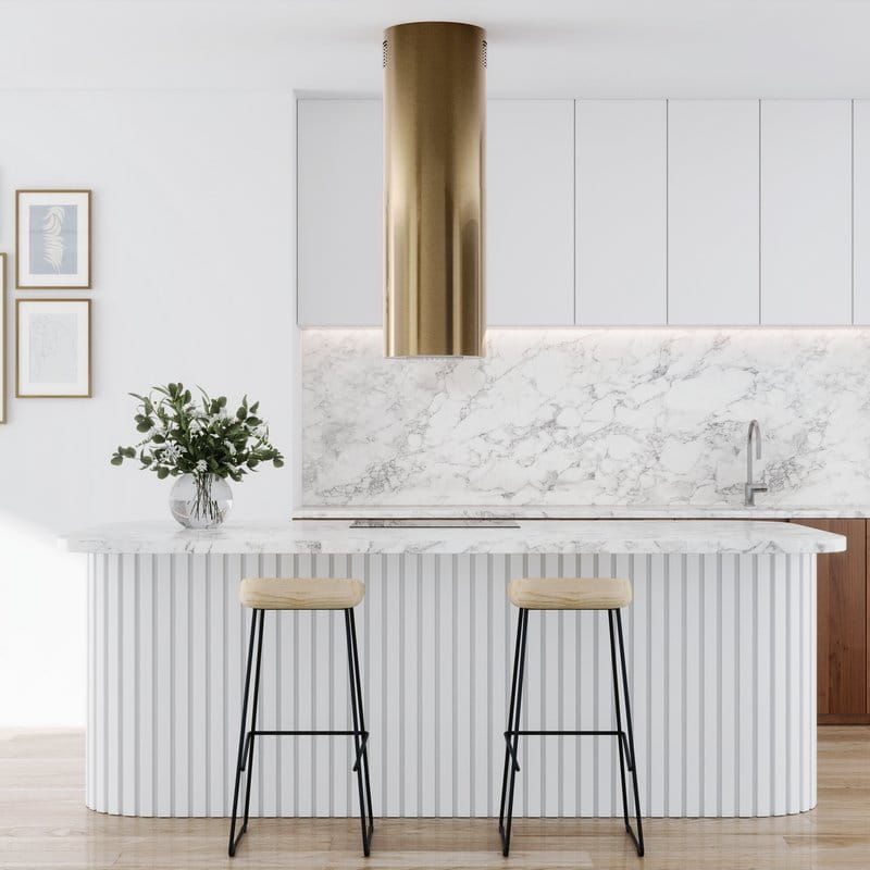 Okap kuchenny LOBELIO ISOLA 39.1 CARMEL GOLD wyspowy to wyjątkowe, ponadczasowe urządzenie, które jest nieodzownym elementem wyposażenia w każdej nowoczesnej kuchni. Coraz częściej w planowaniu wystroju i rozmieszczeniu sprzętu kuchennego decydujemy się na zamontowanie wyspy jako dodatkowego miejsca pracy. Jest to modne i doceniane rozwiązanie. Zamontowanie na wyspie płyty grzewczej spowoduje, że możemy swobodnie przygotować posiłki a umieszczony nad nią okap kuchenny LOBELIO ISOLA sprawi, że gotowanie będzie nie tylko łatwe i przyjemne ale również wygodne. Główną funkcją okapów kuchennych jest oczyszczanie powietrza. Jest to możliwe dzięki zastosowaniu innowacyjnej technologii. Podczas gotowania urządzenie uwalnia kuchnię od pary wodnej i nieczystości a podłączony do komina wentylacyjnego usuwa opary poza pomieszczenie. Zamontowane w nim filtry pozwalają na oczyszczanie kuchni z tłuszczu i brudu oraz neutralizują nieprzyjemne zapachy. Okap wykonany został z wysokiej jakości materiałów, które przez wiele lat gwarantują bezawaryjną pracę urządzenia. Doskonała oraz solidna jakość wykonania to cechy, które wyróżniają okap LOBELIO ISOLA polskiej firmy GLOBALO, wiodącego producenta okapów kuchennych na rynku krajowym. Firma o ugruntowanej pozycji, działająca od wielu lat na polskim rynku stawia na energooszczędność, ekologię oraz jakość swoich produktów. Jednym z ich znakomitych produktów jest wyspowy okap LOBELIO ISOLA, który zadowoli nawet najbardziej wymagającego klienta. Dobrze dopasowany okap kuchenny może idealnie wpasować się w aranżację nowoczesnej kuchni oraz będzie zachwycał i przyciągał wzrok swoim wyglądem dając komfort użytkowania i elegancji.