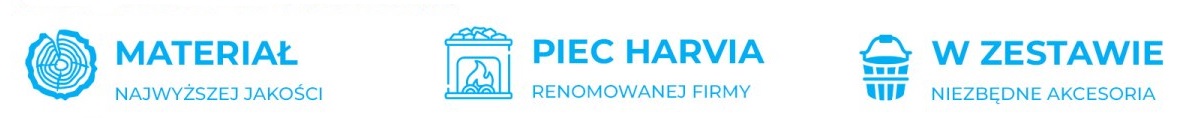 - piec HARVIA VEGA BC80 o mocy 8000W (8KW) z kamieniami, wykonany ze stali nierdzewnej, posiada wbudowany łatwy w obsłudze panel sterujący, pokrętła sterujące temperaturą i czasem pracy,