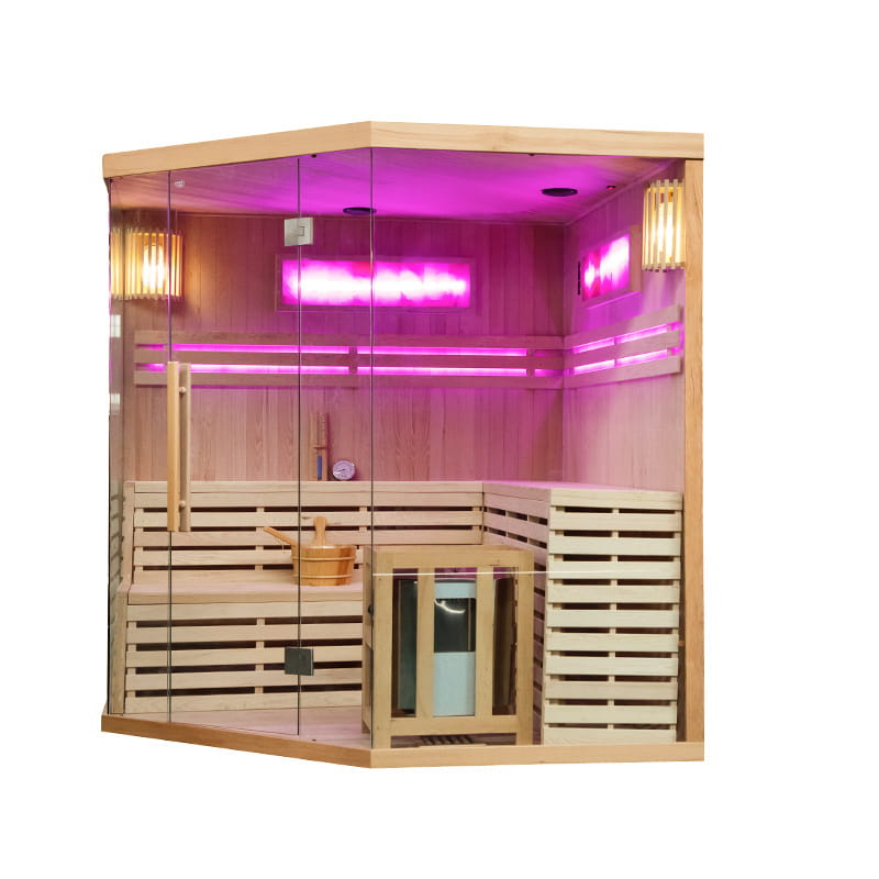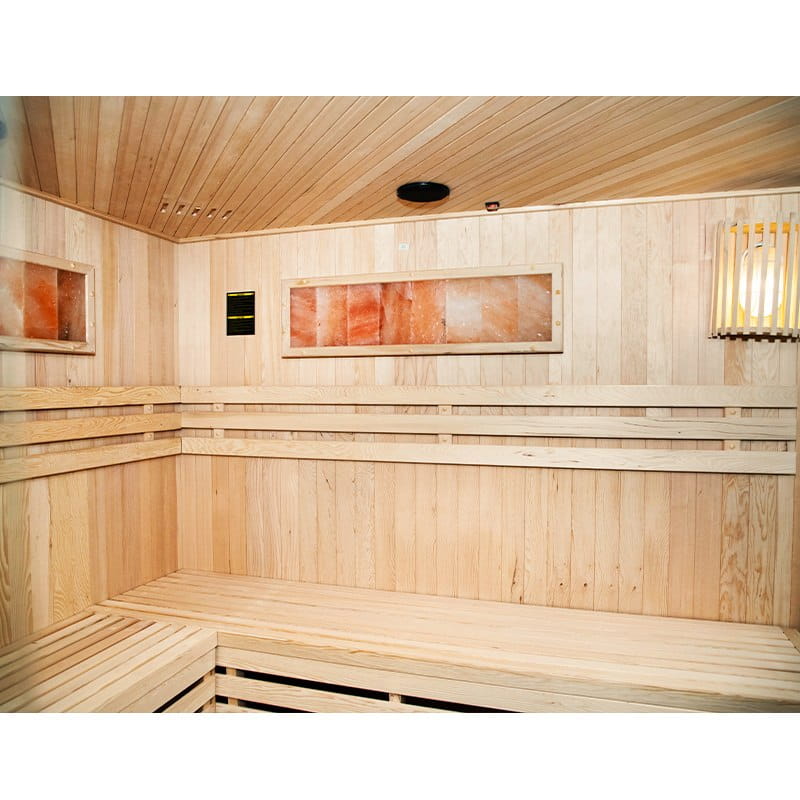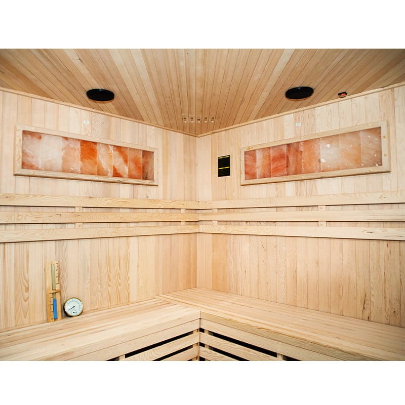 - TERAPIA SOLĄ: Terapia solą w saunie łączy korzyści ciepła sauny z leczniczymi właściwościami soli, poprawiając jakość powietrza i wspierając zdrowie dróg oddechowych, wzbogacają powietrze w cenne mikroelementy. Dodatkowo, ta metoda przyczynia się do relaksacji i detoksykacji skóry, oferując głębokie odprężenie i poprawę samopoczucia.