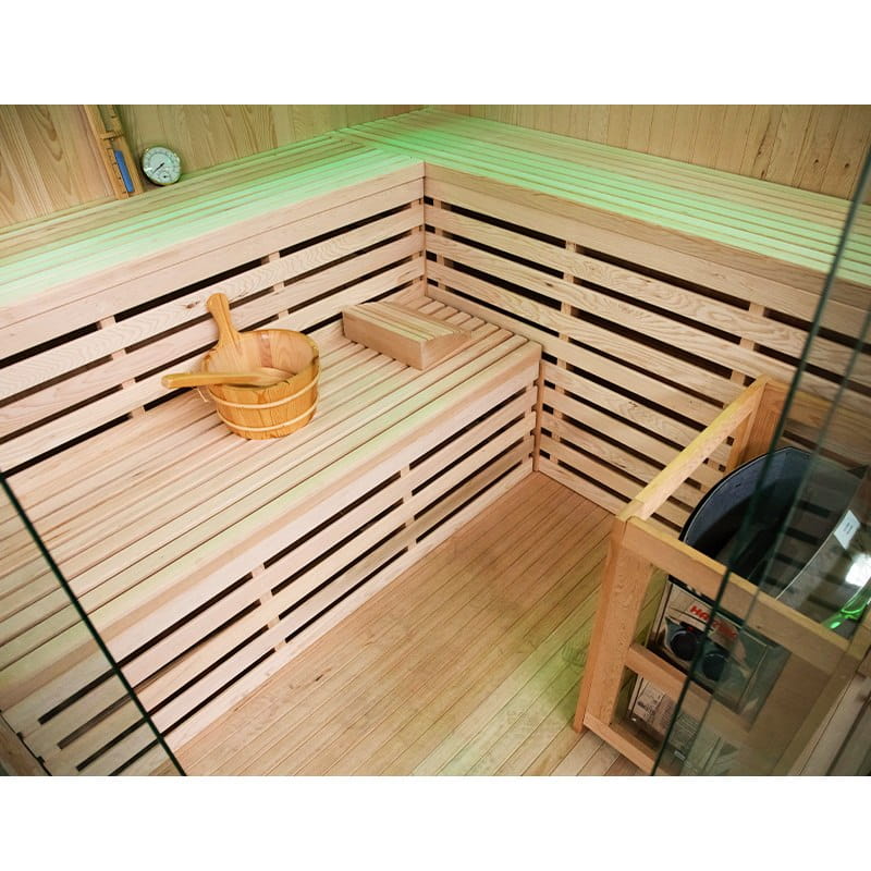 - ODCHUDZANIE I SPALANIE TKANKI TŁUSZCZOWEJ: Sauna tradycyjna sucha wspomaga i sprzyja odchudzaniu przy jednoczesnej aktywności fizycznej i stosowanej diety. Dzięki wysokiej temperaturze, sesje w saunie przyspieszają metabolizm oraz usuwają pot i wodę z ciała, a nawet przyczynia się do spalania niewielkie ilości tłuszczu.