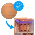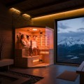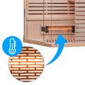 SAUNA INFRARED ALTA4 zwana również jako sauna sucha to propozycja stworzenia strefy komfortu dla siebie i bliskich nam osób we własnym domu. Wybierając saunę infrared firmy HYDROSAN stawiamy na zdrowie, relaks oraz komfort. Sauna ALTA4 wykonana została z dobrej jakości drewna, jodły kanadyjskiej HEMLOCK, która wyróżnia się trwałością i odpornością na deformację oraz zapewnia właściwości izolacyjne. Temperatura powietrza jaka powstaje osiągana jest dzięki wysokiej klasy energooszczędnym grzejnikom karbonowym i kwarcowym, które zapewniają równomierny rozkład ciepła w całej saunie. Działanie sauny infrared polega na emitowaniu promieniowania podczerwonego, które działa na różnych głębokościach tkanek, przenika głęboko w skórę i podgrzewa ciało od wewnątrz. Jest to bardziej efektywne i łagodniejsze dla skóry, co pozwala na dłuższe i bardziej komfortowe sesje w saunie. Promieniowanie to odpowiada za nasze dobre samopoczucie, zapobiega zaburzeniom rozwoju układu kostnego, daje poczucie wewnętrznego ciepła i stymuluje biologiczne przemiany w organizmie niezbędne do utrzymania homeostazy i ogólnego zdrowia. Dzięki zastosowaniu tego promieniowania, terapia w saunach infrared jest bardzo skuteczna w walce z celulitem i ujędrnianiem ciała poprzez lipolizę i rozpad trójglicerydów i lipidów komórek tkanki tłuszczowej. Ważne jest również, że z saunowania korzystać mogą osoby młodsze i starsze, z chorobami będącymi przeciwwskazaniem do korzystania z tradycyjnych saun. Warto dodać, że z saun infrared jest możliwość korzystania w ubraniu co dla niektórych osób jest dużym udogodnieniem. Natomiast dla osób które nie lubią zamkniętych pomieszczeń ważnym jest że nie trzeba zamykać drzwi co nie ma wpływu na jakość korzystania z sauny. Oprócz korzyści dla ciała, sauna ALTA4 ma również pozytywny wpływ na nasz umysł. Relaksujący i kojący klimat pozwala nam oderwać się od codziennego stresu i napięcia, terapeutyczna moc oraz relaksacyjny charakter sprawiają, że jest to jedno z najpopularniejszych i najbardziej cenionych miejsc w Polsce i na świecie.