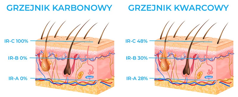 IR - promieniowanie podczerwone emitowane, wnika głęboko w skórę, zwiększa temperaturę ciała