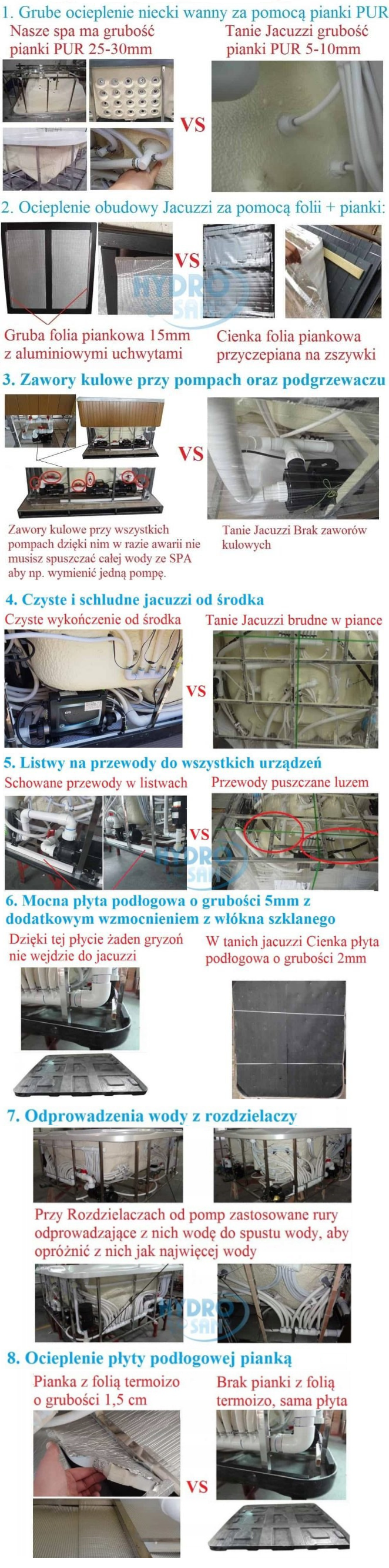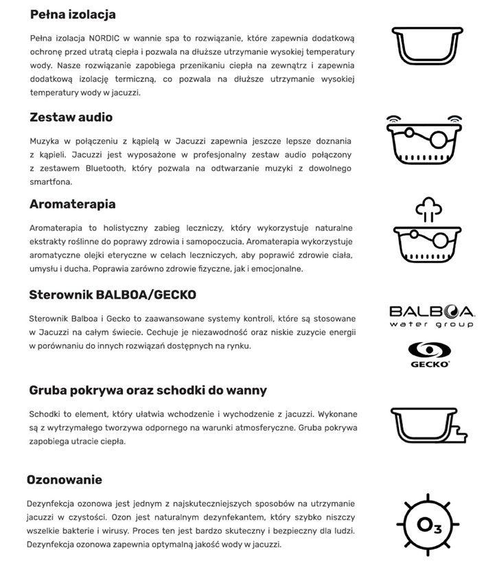 • jacuzzi do użytku całorocznego: obudowa z izolacją termiczną,