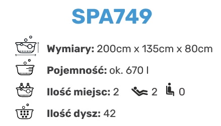 Wanna HYDROSAN SPA749 to 2-osobowe jacuzzi SPA z hydromasażem o nowoczesnym stylu i przemyślanej budowie. Posiadanie własnej wanny ogrodowej umożliwia relaksujące kąpiele bez względu na porę dnia czy roku. Możliwość odprężenia się w wannie SPA po ciężkim dniu w szkole, na uczelni czy w pracy to coś, o czym marzy wiele osób. Jacuzzi 2-osobowe daje również wspaniałą okazję na romantyczne spędzenie czasu tylko we dwoje, np. z okazji rocznicy czy Walentynek. Kąpiel w prywatnej wannie z jacuzzi może także umilić spotkania z przyjaciółmi czy imprezy rodzinne. Taki basen ogrodowy to prawdziwa atrakcja, na której punkcie szczególnie oszaleją dzieci w różnym wieku. Sprawi im mnóstwo radości i dostarczy niezapomnianej frajdy podczas przyjęć urodzinowych czy innych dziecięcych zabaw.