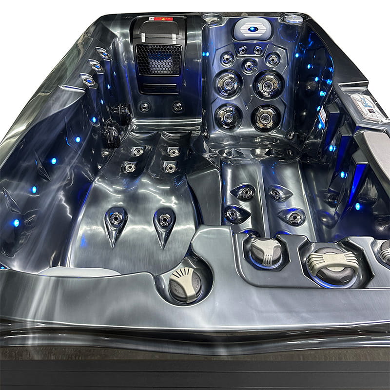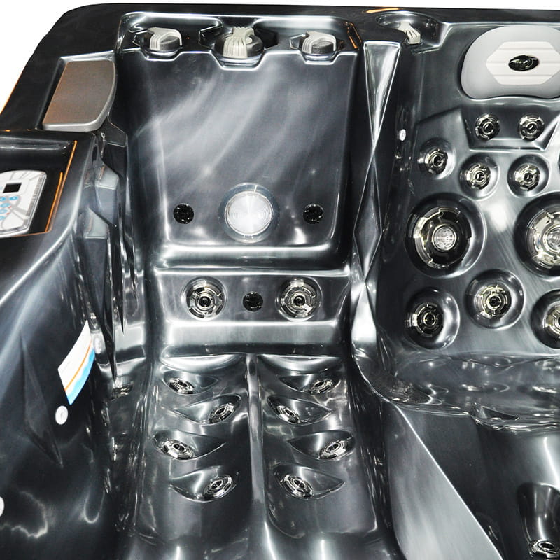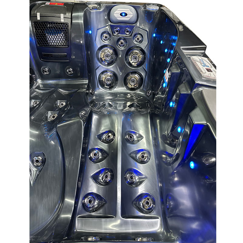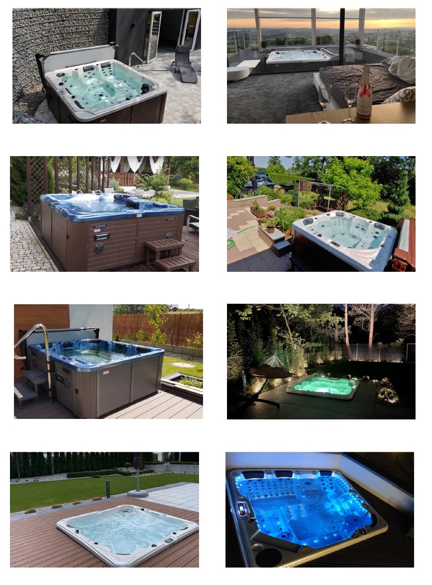 • Bogate wyposażenie w standardzie: oświetlenie LED siedmiokolorowe, duża ilość dysz masujących oraz różnorodna ich wielkość, mocne pompy wodne, energooszczędna pompa cyrkulacyjna, mocny podgrzewacz wody o mocy 3KW, pełne ocieplenie niecki Jacuzzi pianką PUR o grubości 25-30mm, aromaterapia, odpowietrzanie dysz wodnych każdego stanowiska, ozonowanie, płyta polimerowa podłogowa. Sprawdź jakie możesz jeszcze dobrać opcje dodatkowe do swojego SPA.