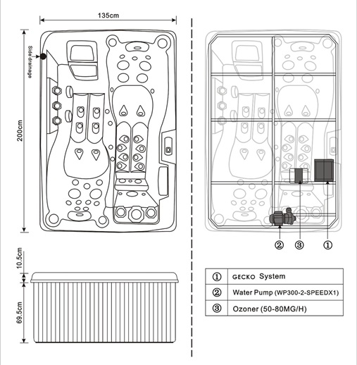• Dla SPA przeznaczonego dla więcej niż 3 osób: wymagane jest zasilanie 380V z zabezpieczeniem różnicowo-prądowym dostosowanym do modelu wanny o szczegóły zapytaj sprzedawcę.