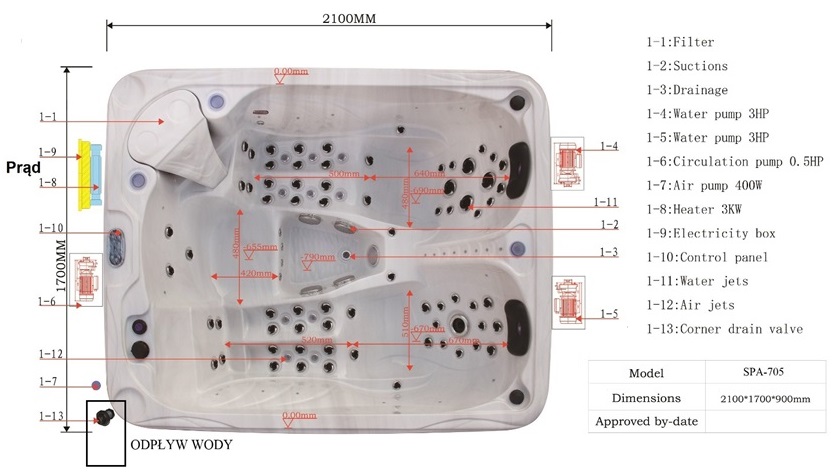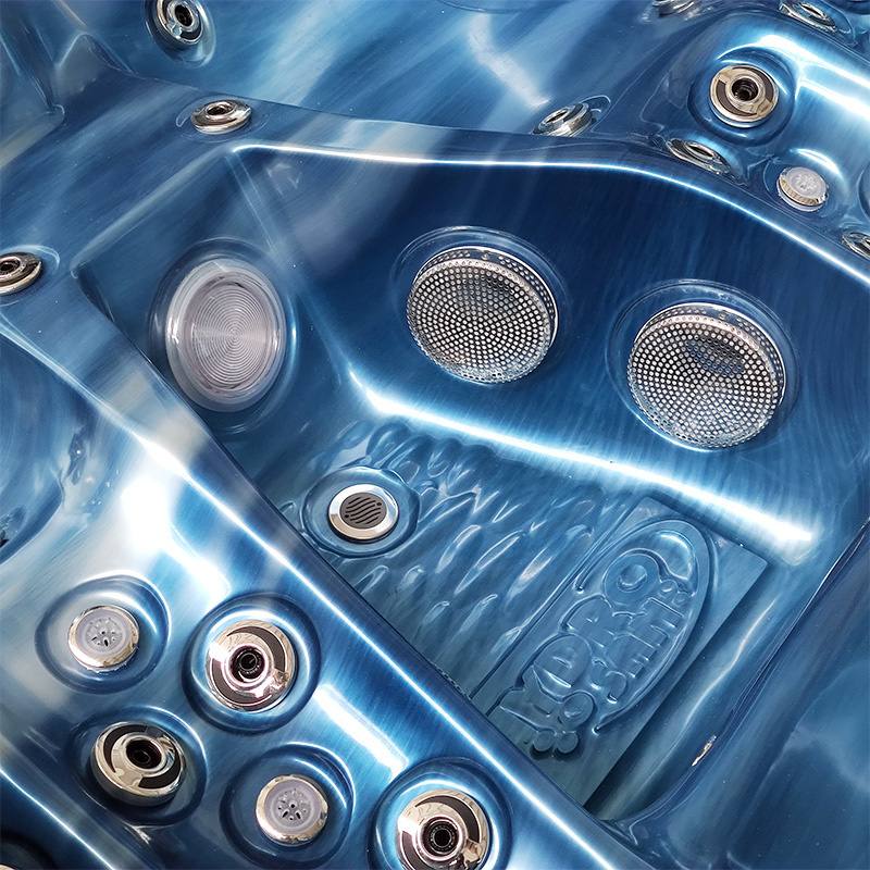 - płyta podłogowa polimerowa jednoczęściowa: tworzy podstawę jacuzzi. Płyta jest tak skonstruowana, aby tworzyć barierę odporną dla wilgoci, owadów oraz zimnego podłoża na którym będzie znajdować się SPA. Płyta podłogowa zapobiega też stratom energii, dzięki niej spód wanny jest bardzo szczelny. Między wanną a płytą nie ma żadnej szczeliny. Płyta podłogowa daje dodatkową stabilność wannie.