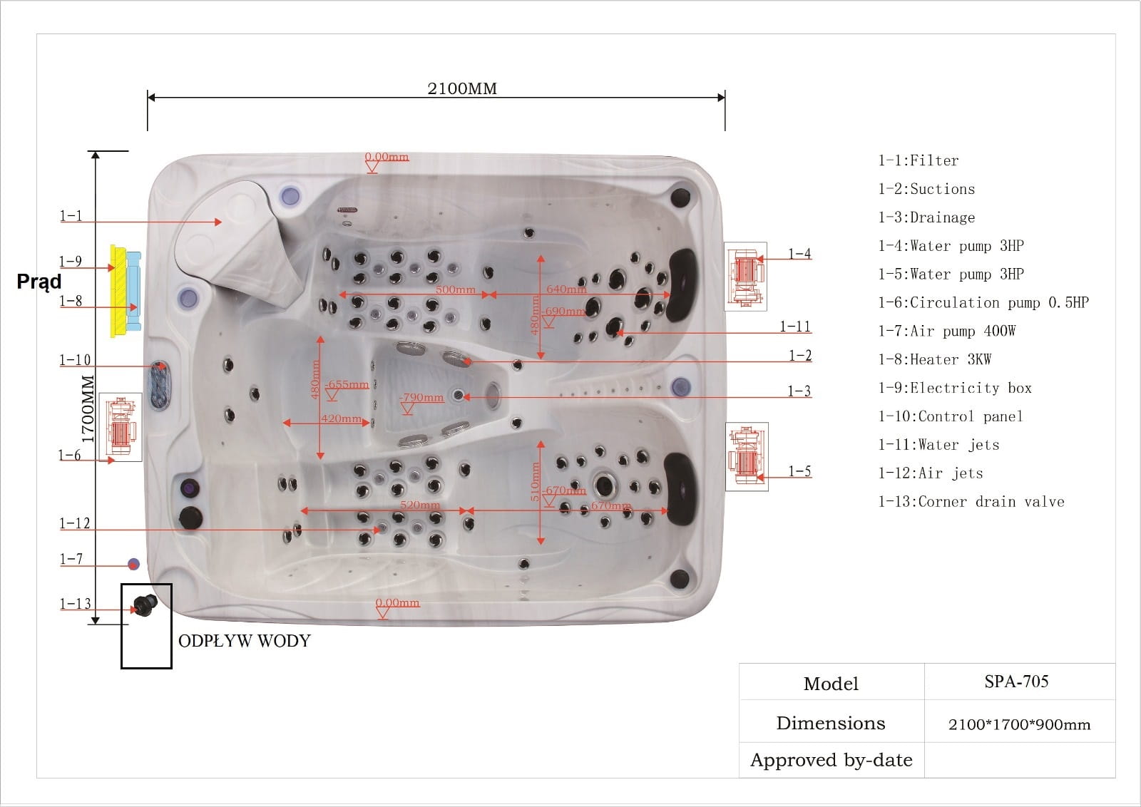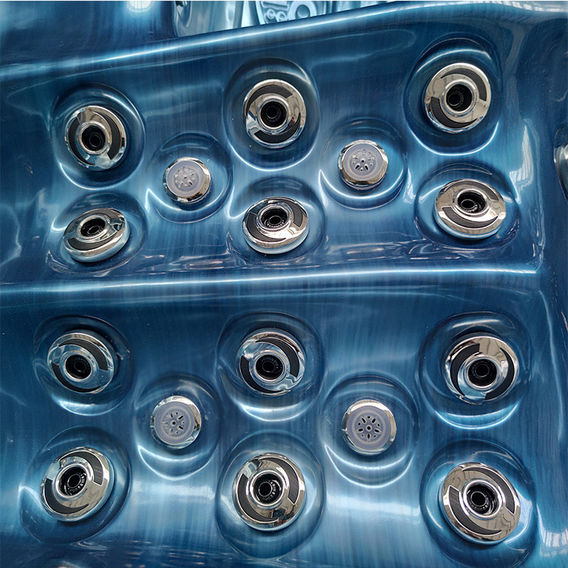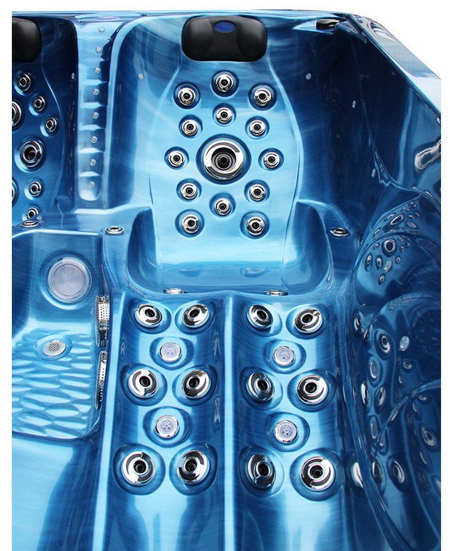 - izolacja standardowa niecki akrylowej: około 25-30mm. Konstrukcja naszego Spa została tak zaprojektowana, aby zapobiegać uszkodzeniom z powodu naprężeń powstających z biegiem czasu oraz nacisku wody, a także użytkownika. Równomierne rozłożenia masy oraz zastosowanie wsporników pod siedziskami zapobiega uszkodzeniom oraz zapewnia długowieczność naszego Jacuzzi.