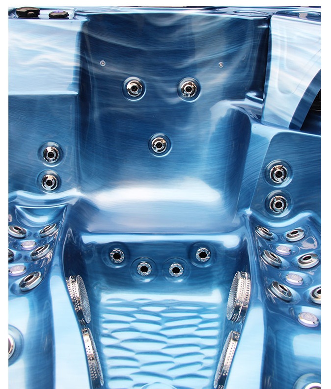 - Bogate wyposażenie w standardzie: oświetlenie LED siedmiokolorowe, duża ilość dysz masujących oraz różnorodna ich wielkość, mocne pompy wodne, energooszczędna pompa cyrkulacyjna, mocny podgrzewacz wody o mocy 3KW, pełne ocieplenie niecki Jacuzzi pianką PUR o grubości 25-30mm, aromaterapia, odpowietrzanie dysz wodnych każdego stanowiska, ozonowanie, płyta polimerowa podłogowa. Sprawdź jakie możesz jeszcze dobrać opcje dodatkowe do swojego SPA.