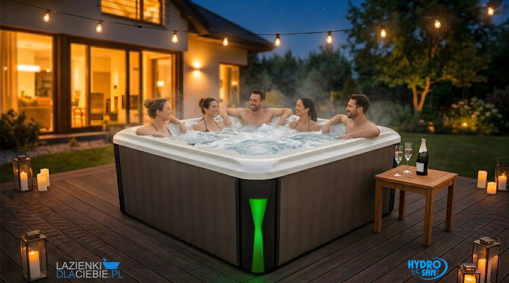 Marzysz o codziennej dawce głębokiego relaksu i odprężenia w zaciszu własnego ogrodu? Jacuzzi HYDROSAN SPA560 w unikalnym wariancie kolorystycznym Biała Perła obudowa Kawa to Twoja osobista, prestiżowa strefa wellness. To nie tylko basen z bąbelkami – to domowe SPA, które doskonale łączy nowoczesny design, przemyślaną ergonomię i najwyższą jakość wykonania. Zaprojektowane z myślą o maksymalnym komforcie, jacuzzi HYDROSAN SPA560 o imponujących wymiarach 220x220 cm, stwarza przestronną i komfortową przestrzeń dla 5 osób, oferując dwa miejsca leżące i trzy siedzące. Po ciężkim dniu pozwól sobie na chwilę zapomnienia – potężny hydromasaż uwolni Cię od napięcia i stresu, poprawiając krążenie i jakość snu. Dzięki temu domowe sesje relaksacyjne staną się Twoim codziennym rytuałem, eliminując potrzebę wcześniejszych rezerwacji w salonach SPA. Ale wanna ogrodowa HYDROSAN SPA560 to znacznie więcej niż tylko odprężenie. To również idealne centrum rozrywki dla Twoich bliskich! Niezależnie od tego, czy planujesz wieczorny grill ze znajomymi, garden party, czy urodziny dziecka, to jacuzzi stanie się magnetyzującą atrakcją. Dzieci pokochają wodne szaleństwo, a dorośli docenią niepowtarzalną atmosferę wspólnych chwil. Możliwość ustawienia jacuzzi zarówno na tarasie, w ogrodzie, jak i we wnętrzu domu, daje Ci pełną swobodę aranżacji.