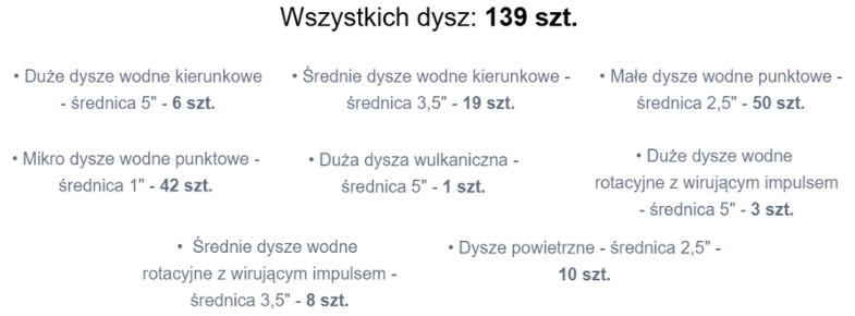 - średnie dysze wodne kierunkowe średnica 3,5": 19 szt,