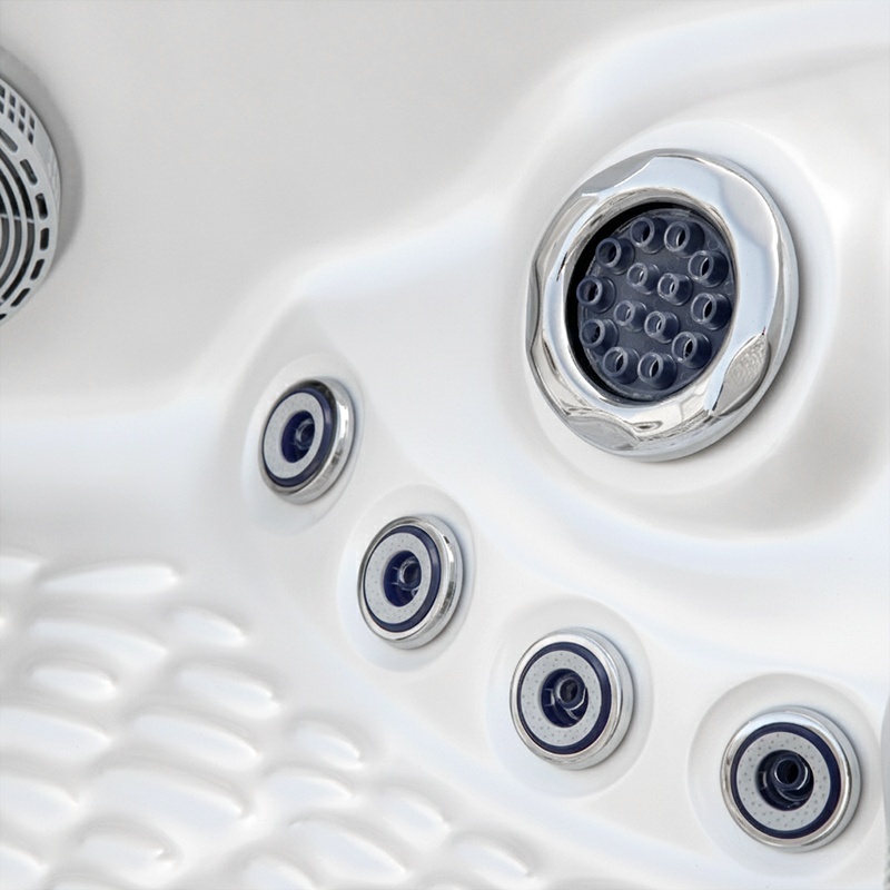 - Zróżnicowane i unikalne stanowiska masujące, tak aby każdy z użytkowników mógł znaleźć coś dla siebie. Układ dysz oraz ich wielkość zaprojektowane przez fizjoterapeutę, żeby maksymalnie dotrzeć do miejsc które chcemy wymasować, a także zapewnić odpowiedni masaż na każdą partię ciała.
