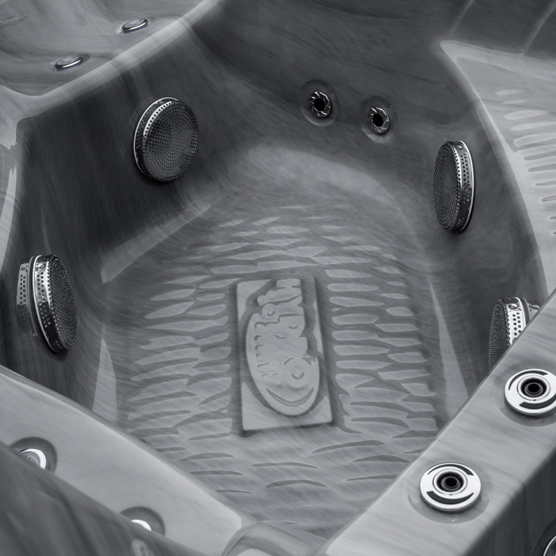 - płyta podłogowa polimerowa jednoczęściowa: tworzy podstawę jacuzzi. Płyta jest tak skonstruowana, aby tworzyć barierę odporną dla wilgoci, owadów oraz zimnego podłoża na którym będzie znajdować się SPA. Płyta podłogowa zapobiega też stratom energii, dzięki niej spód wanny jest bardzo szczelny. Między wanną a płytą nie ma żadnej szczeliny. Płyta podłogowa daje dodatkową stabilność wannie.
