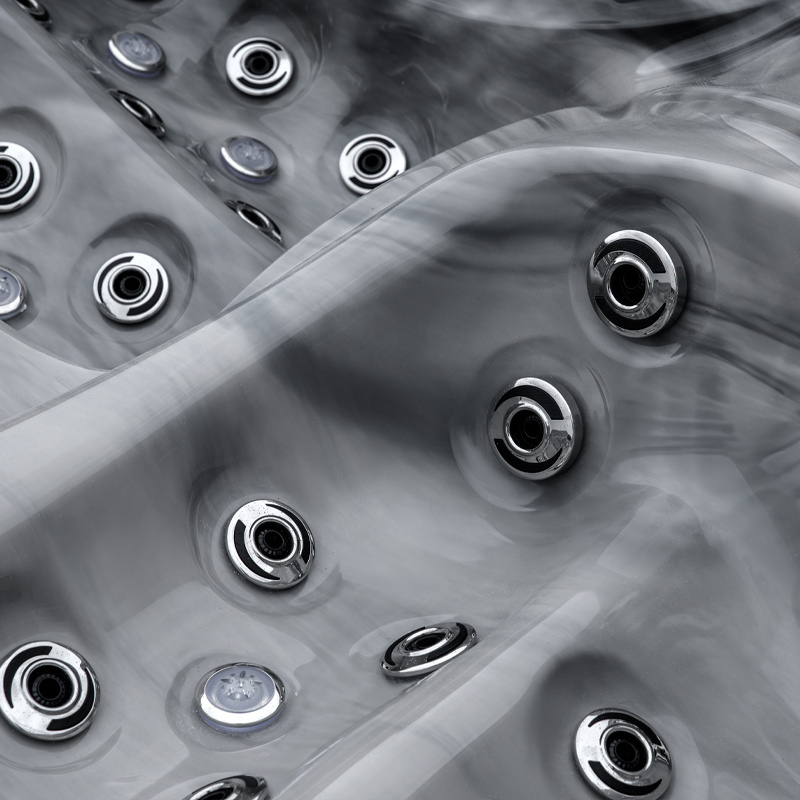 - Zróżnicowane i unikalne stanowiska masujące, tak aby każdy z użytkowników mógł znaleźć coś dla siebie. Układ dysz oraz ich wielkość zaprojektowane przez fizjoterapeutę, żeby maksymalnie dotrzeć do miejsc które chcemy wymasować, a także zapewnić odpowiedni masaż na każdą partię ciała.