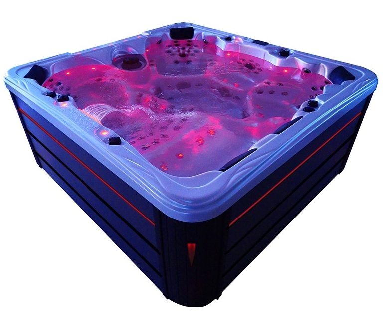 - Bogate wyposażenie w standardzie: oświetlenie LED siedmiokolorowe, duża ilość dysz masujących oraz różnorodna ich wielkość, mocne pompy wodne, energooszczędna pompa cyrkulacyjna, mocny podgrzewacz wody o mocy 3KW, pełne ocieplenie niecki Jacuzzi pianką PUR o grubości 25-30mm, aromaterapia, odpowietrzanie dysz wodnych każdego stanowiska, ozonowanie, płyta polimerowa podłogowa. Sprawdź jakie możesz jeszcze dobrać opcje dodatkowe do swojego SPA.