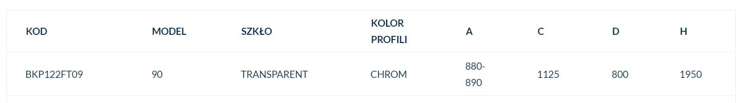 | Kolor szkła | Transparentne (przezroczyste) |