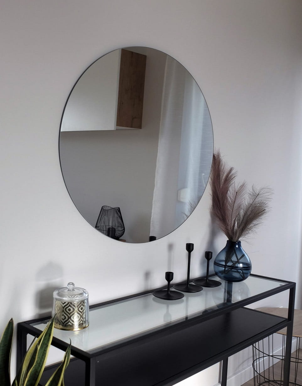 Lustro okrągłe bez oprawy 90 to piękne lustro o idealnym kształcie, jest nieodzownym elementem wyposażenia łazienek ale również znakomicie wpasuje się do przestronnego korytarza lub w intymnej sypialni, a nawet w pięknym salonie i garderobie. Efektowne lustro, które przykuwa wzrok i zniewala swoją prostotą oraz ponadczasową elegancją będzie wyszukaną i niepowtarzalną ozdobą każdej aranżacji nie tylko łazienkowej. Może stać się dopełnieniem wybranego stylu i będzie komponowało się z wyposażeniem oraz pozostałymi dodatkami. Warto dodać, że lustro wykonane zostało przez polskiego producenta OK STYL, który stawia na jakość swoich wyrobów i bezpieczeństwo klientów i dlatego też krawędzie lustra zostały starannie wyszlifowane i wypolerowane. Lustro bez ramy idealnie pasuje do nowoczesnych łazienek oraz innych pomieszczeń w naszym domu, znacznie uatrakcyjni naszą aranżację oraz nada niepowtarzalnego wystroju naszemu wnętrzu.