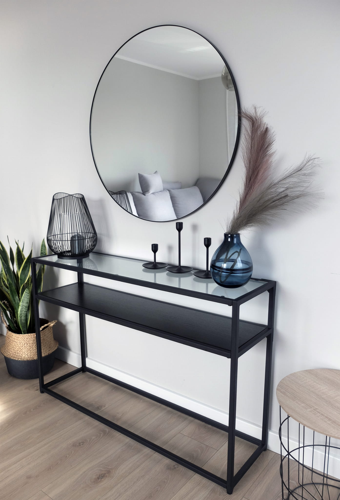 Lustro okrągłe w czarnej oprawie 90 to piękne lustro o idealnym kształcie zamknięte w ponadczasowej czerni, która otula ramę lustra. Jest nieodzownym elementem wyposażenia łazienek ale również znakomicie wpasuje się do przestronnego korytarza lub w intymnej sypialni, a nawet w pięknym salonie i garderobie. Efektowne lustro, które przykuwa wzrok i zniewala swoją prostotą oraz ponadczasową elegancją będzie wyszukaną i niepowtarzalną ozdobą każdej aranżacji nie tylko łazienkowej. Może stać się dopełnieniem wybranego stylu i będzie komponowało się z wyposażeniem oraz pozostałymi dodatkami. Warto dodać, że lustro wykonane zostało przez polskiego producenta OK STYL, który stawia na jakość swoich wyrobów i bezpieczeństwo klientów i dlatego też krawędzie lustra zostały starannie wyszlifowane i wypolerowane. Lustro w czarnej ramie idealnie pasuje do nowoczesnych łazienek oraz innych pomieszczeń w naszym domu, znacznie uatrakcyjni naszą aranżację oraz nada niepowtarzalnego wystroju naszemu wnętrzu.