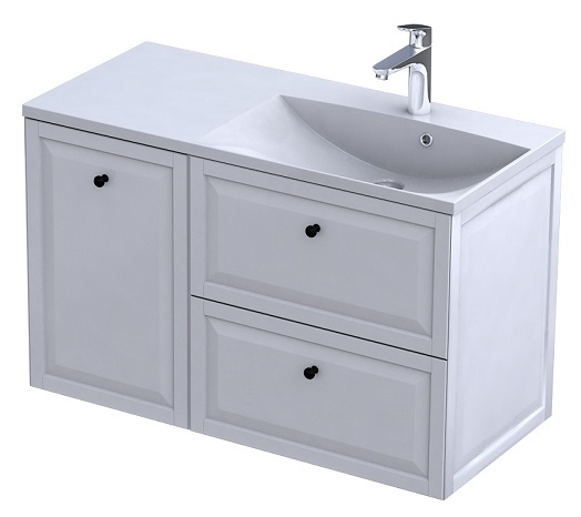Umywalka meblowa AMELIA 100 PRAWA (misa z prawej strony) jest uformowana z konglomeratu, czyli połączenia kamienia naturalnego z żywicą. Ta elegancka biała umywalka będzie idealnym uzupełnieniem nowoczesnej i stylowej aranżacji łazienki. Produkt ten doskonale wpasuje się w aranżację mebla. Jest bardziej odporny na uszkodzenia, zarysowania czy odpryski, o co w łazience podczas porannej toalety nietrudno. Umywalka wyposażona jest w przelew dla zwiększenia bezpieczeństwa. Do kompletowania szafkami podumywalkowymi UNI 60 cm, w zestawie z szafkami niskimi UNI 40 cm.