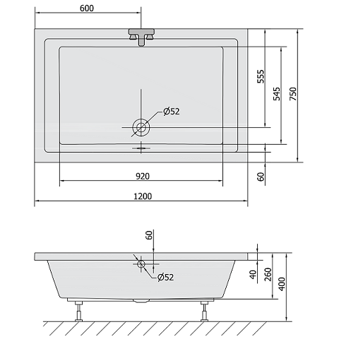 • średnica odpływu: Ø 52 mm,