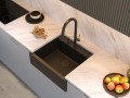Zestaw zawiera zlewozmywak MORGAN 111 GraniteQ PURE CARBON + bateria kuchenna MARILYN Q LINE z ruchomą wylewką + syfon Push-2-Open save space z odpływem 3,5" SteelQ PVD miedziany