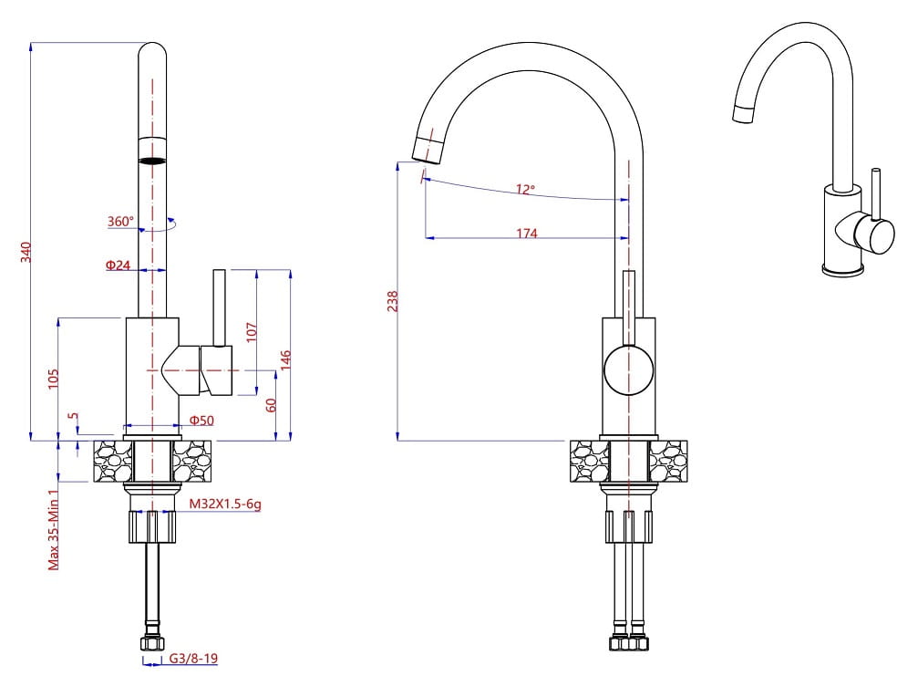 BATERIA ZLEWOZMYWAKOWA NAOMI KOLOR CZARNY METALIK