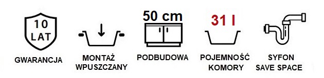 Zestaw zawiera zlewozmywak stalowy LUKE 100 SteelQ stal szczotkowana + syfon save space z odpływem 3,5" stalowy