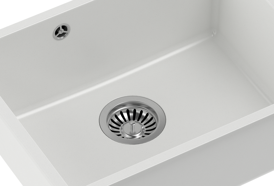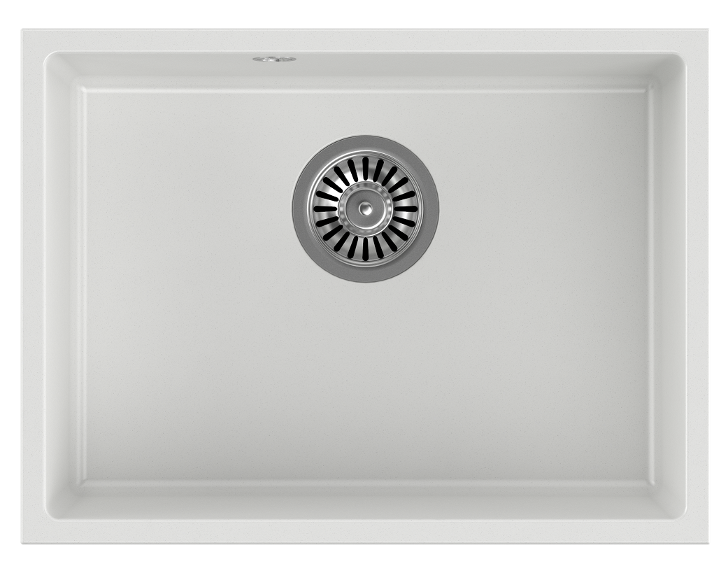 Zestaw zawiera zlewozmywak podwieszany ALEC 50 GraniteQ snow white + syfon save space z odpływem 3,5" SteelQ stalowy