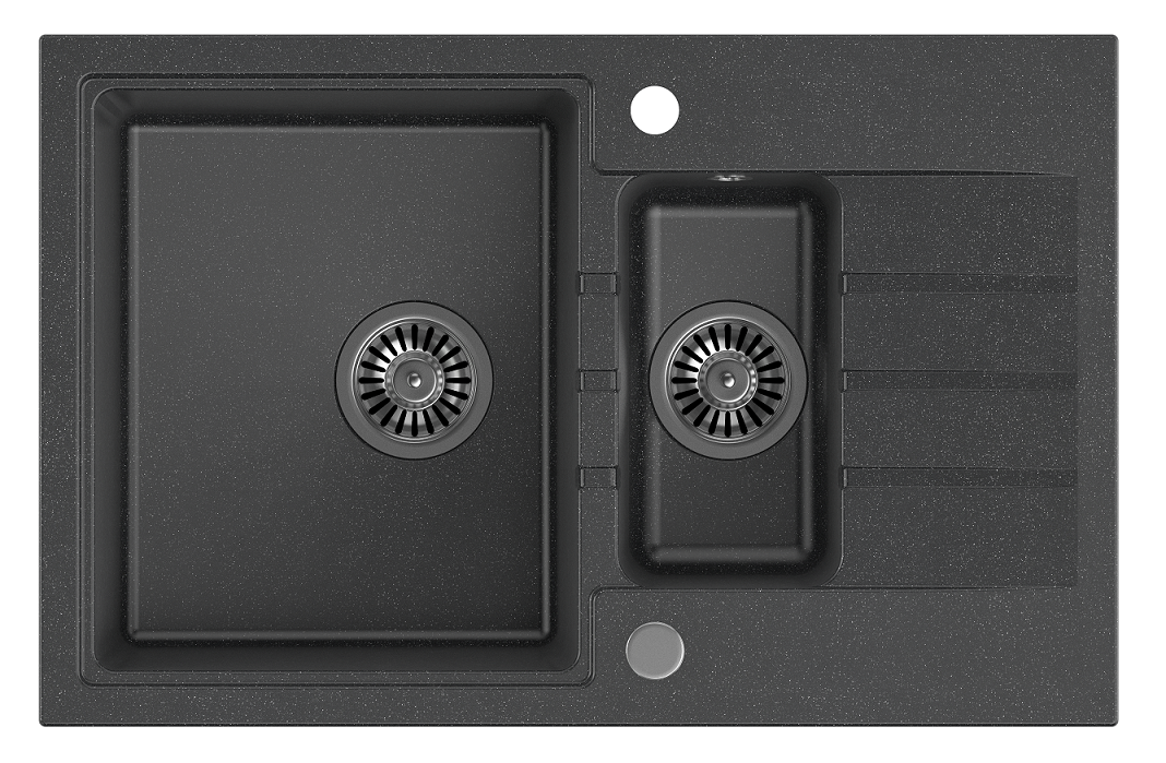 Zestaw zawiera zlewozmywak PETER 156 GraniteQ black dotted + syfon save space z odpływem 3,5" SteelQ stalowy