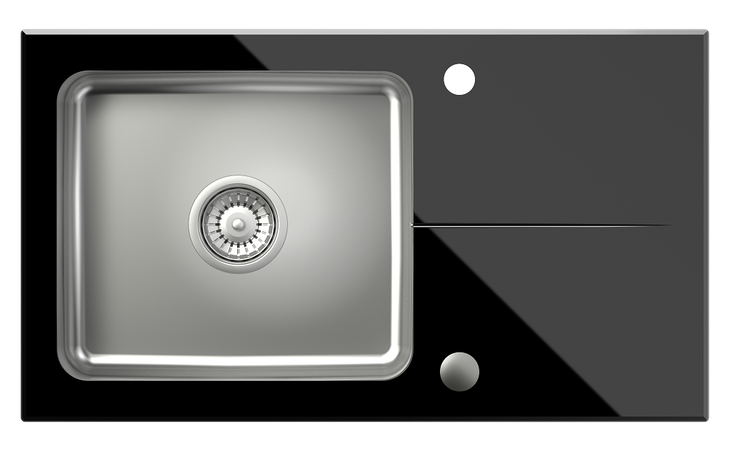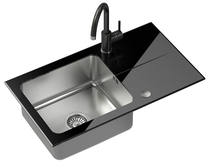 Zestaw zawiera zlewozmywak szklany HUGH 111 GlassQ HardQ/SteelQ + bateria kuchenna NAOMI + syfon save space z odpływem 3,5"