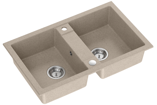 Zestaw zawiera zlewozmywak DENZEL 120 GraniteQ beżowy + syfon z odpływem 3,5" SteelQ stalowy
