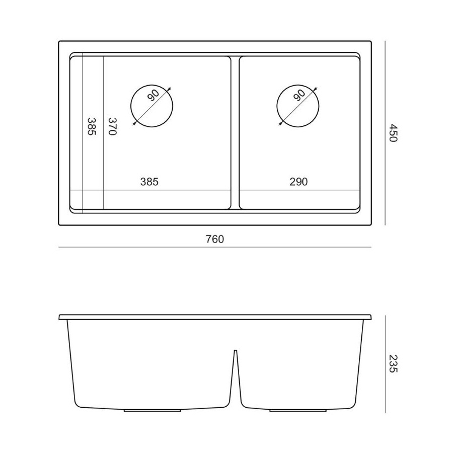 Zestaw zawiera zlewozmywak podwieszany LOGAN 120 GraniteQ PEARL BEIGE (perłowy beż) + stalowa nakładka + syfon save space z odpływem 3,5" SteelQ stalowy